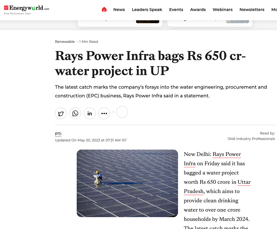 Previous ImageNext Image Rays-Power-Infra-bags-Rs-650-cr-water-project-in-UP-Energy-News-ET-EnergyWorld